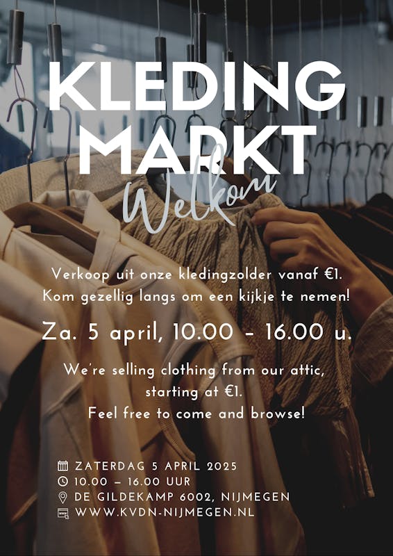 Kom gezellig langs bij de kledingmarkt op 5 april. Vind hier je nieuwe duurzame tweedehands outfit voor een klein prijsje.