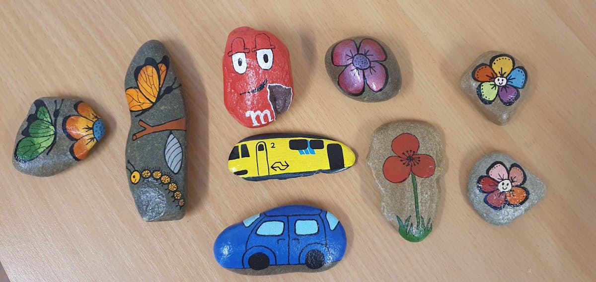 Nadat je de stenen hebt gemaakt met acrylverfstiften moeten ze 24 uur drogen voordat ze afgelakt mogen worden. Je kunt je stenen op een andere dag op afspraak ophalen.