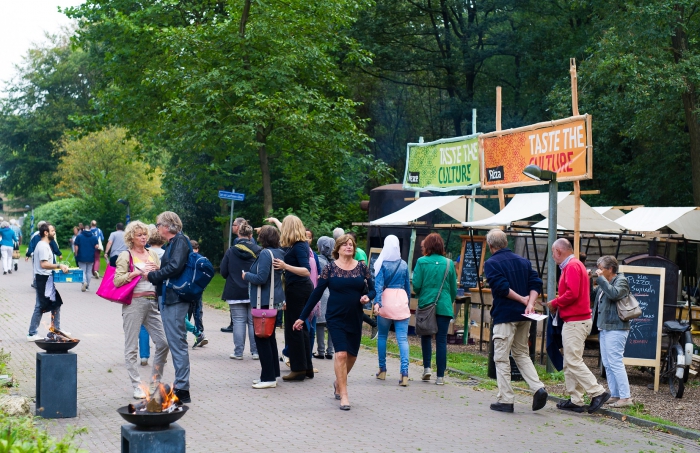 Er staat vanaf de entree, restaurant Le Souk met live-cooking tot aan het Binnenmuseum, een straat van kraampjes, terrasjes en een podium voor de optredens.