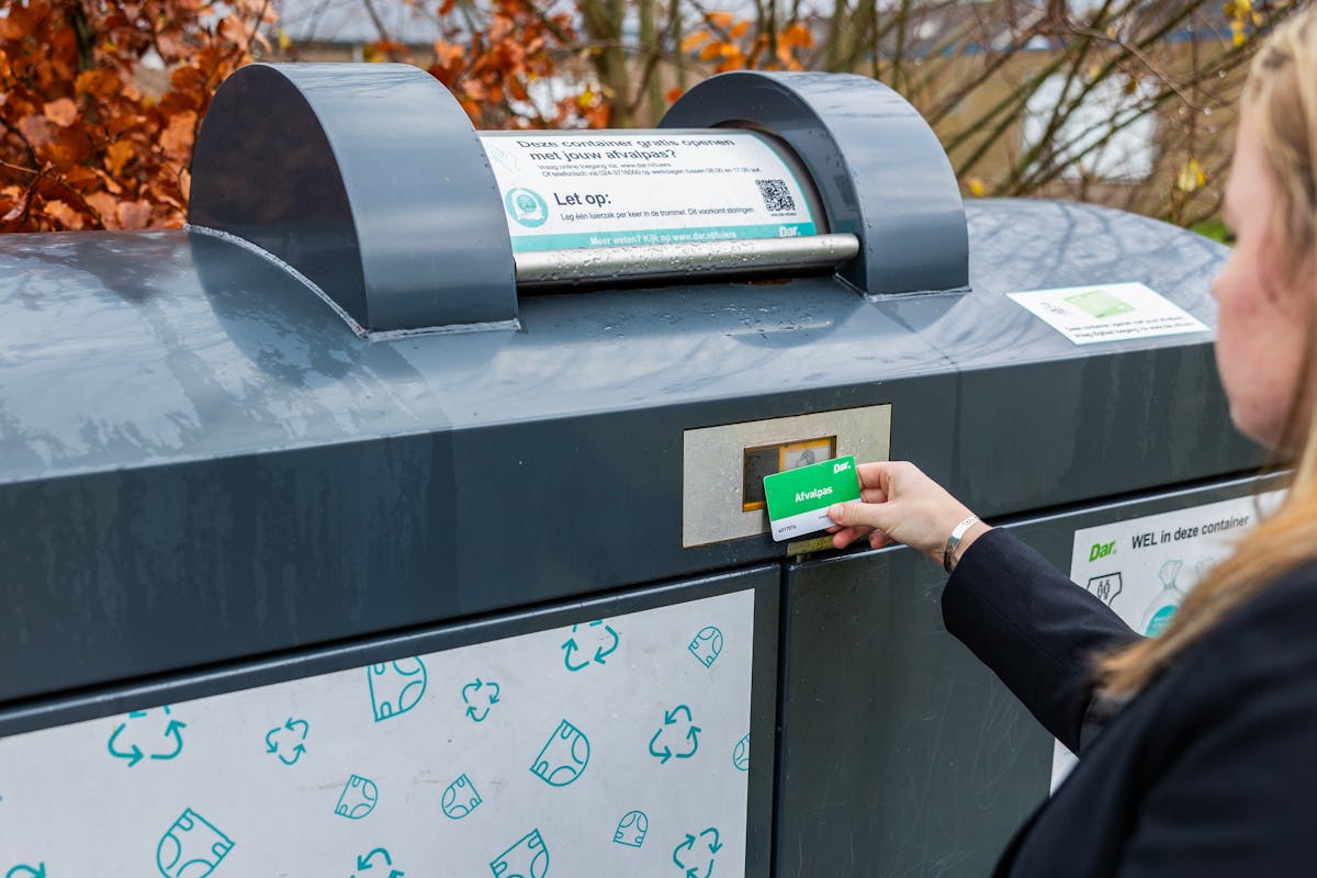 Bewoners hebben toegang nodig om de luiercontainer te openen. Vraag digitaal toegang via www.dar.nl/luiers. Afvalpas verloren, kapot of gestolen? Vraag er een aan via www.dar.nl/afvalpas