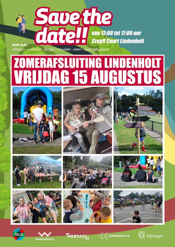 Voor jong&oud, om te ontmoeten en te bewegen, of een kijkje te komen nemen. Iedereen uit Lindenholt is welkom om samen de zomer af te sluiten ☀️