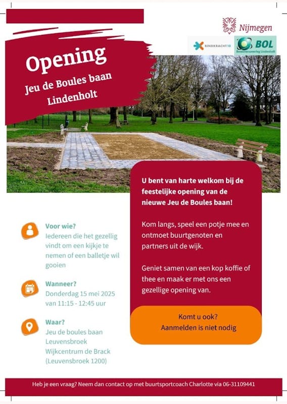 Komt allen. Opening Jeu-de-boulesbaan Leuvensbroek op donderdag 15 mei 2025.